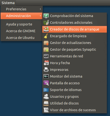 2. Entra en Sistema, Administración, Creador de discos de arranque.